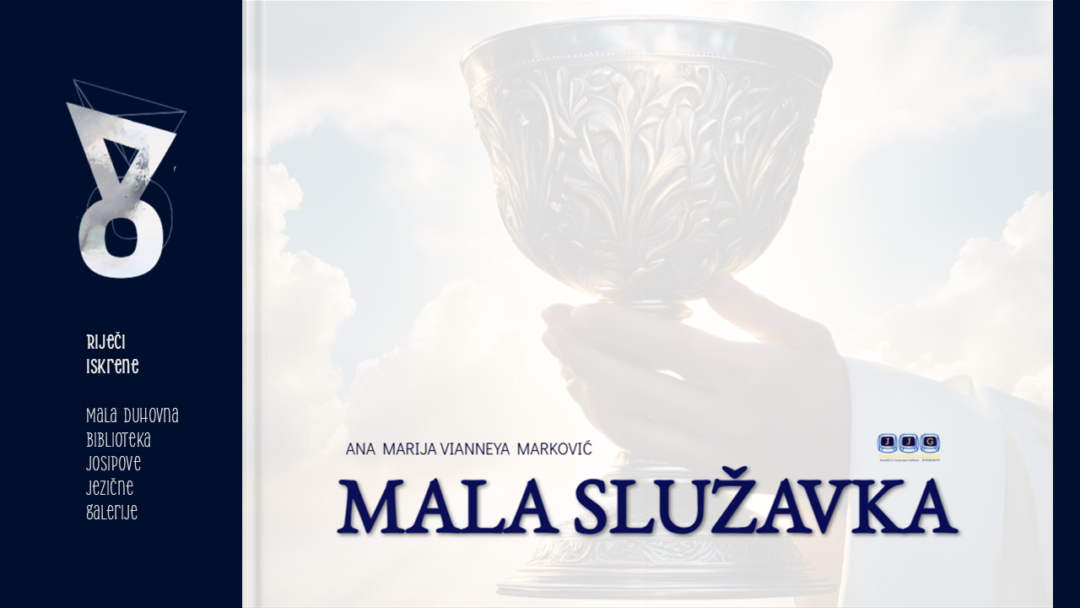 MALA SLUŽAVKA knjiga je duhovnih crtica nadahnuta djetinjstvom potkraj osamdesetih godina 20. stoljeća u Zagrebu u kojoj autorica, kršćanska umjetnica Ana Marija Marković Vianneya, osobito fokusirana na druženje s misionarkama ljubavi i časnom sestrom Fabijanom, svoju pripovjedačicu, koja već kao dijete osjeća snažnu želju za redovništvom, vodi prema prvoj svetoj pričesti. Vješto ispričana zbirka kratkih formi s elementima lirike, humora, autobiografije i kršćanske dokumentaristike (u dijelu u kojem se citira rad J. K. Mijatović, Majci Tereziji i Franji Kuhariću iz 2022. godine) sastavljena je od triju dijelova: Doprvopričesne crtice, Prvopričesni zapisi i Sestra Fabijana i sveta Barbara. U crtici Santa Barbara u vezu dovodi američku sapunicu s maloazijskom sveticom Barbarom, kršćanskom mučenicom iz 3. stoljeća, zaštitnicom rudara i dobre smrti, i svijest da se sveta misa ne propušta zbog televizijske serije, čak ni kad je u pitanju zajedničko obiteljsko gledanje. Uredila: Sanja Miloloža, prof., izv. savjetnica.